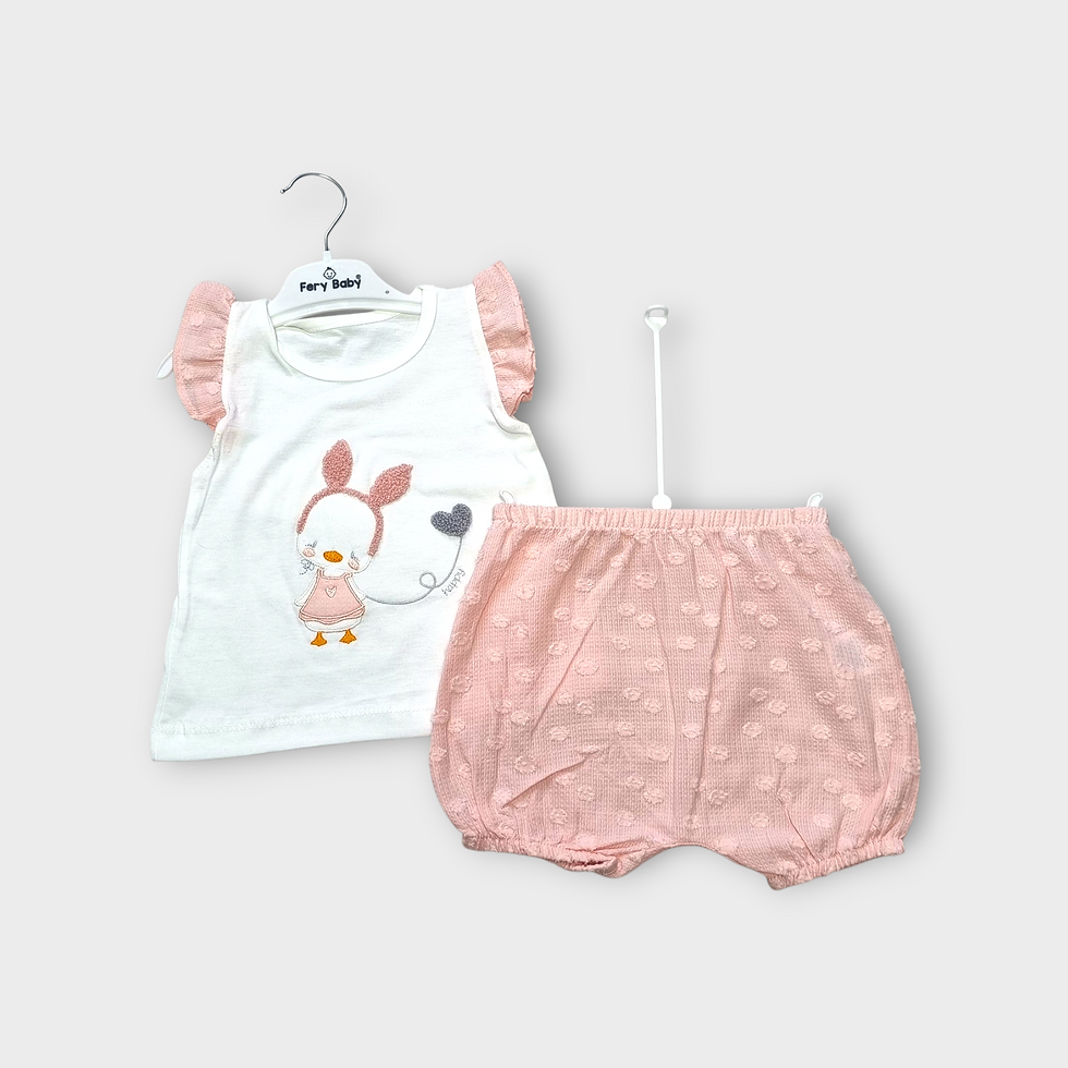 Fery Baby Kız Bebek %100 Pamuk Nakışlı Tişört ve Şort Takımı | 9-12-18 Ay